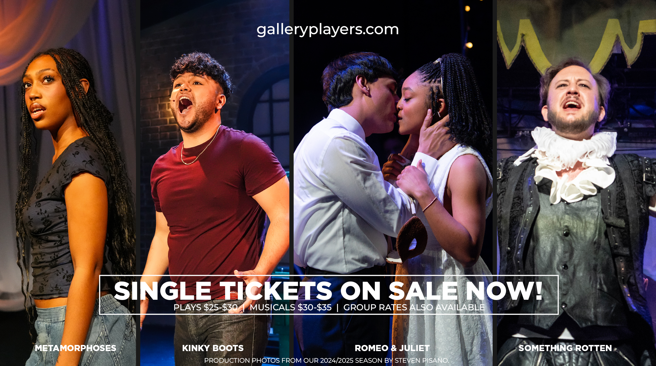 Gallery Players is Brooklyn’s premier Off-Off Broadway theater. Beloved on both sides of the Brooklyn Bridge, this “little theater that could” is located in one of Brooklyn’s most popular neighborhoods, Park Slope. Recipient of the Off-Off Broadway Review’s 2000 Award for Lifetime Achievement and numerous New York Innovative Theatre Awards. Gallery Players is dedicated to producing classic and contemporary plays and musicals as well as premiering new works; nurturing and providing opportunities for theater artists; bringing professional-quality theater to Brooklyn audiences at an affordable cost; and instilling the appreciation of theater in future generations. Gallery’s season comprises three plays and three musicals, the annual Black Box New Play Festival, Players’ Shakespeare, and Overtures: A New Musical Reading Series.